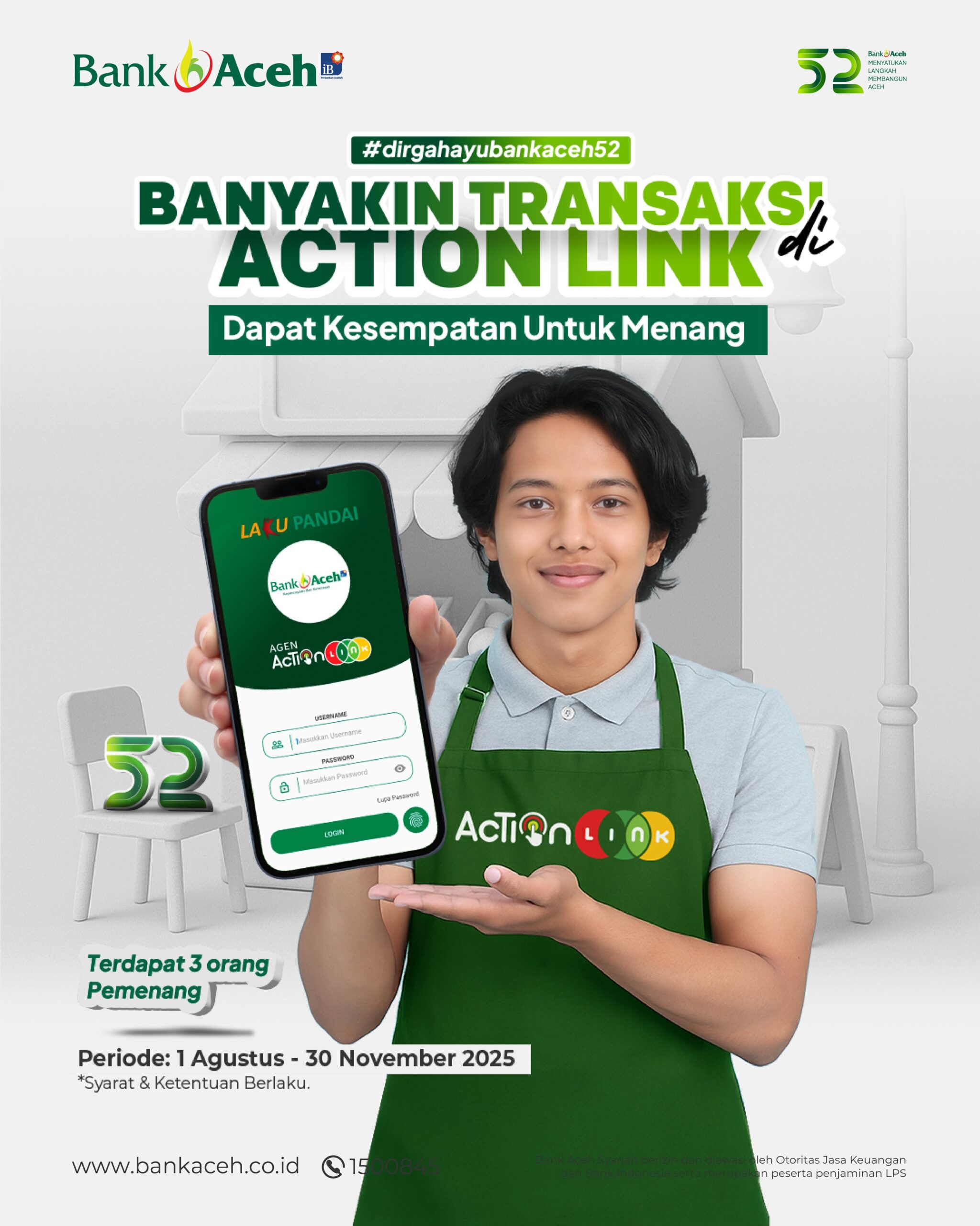 15 Aug, 2025 Bagi Kamu Agen Action Link, Tingkatkan Transaksi, Raih Kesempatan Menang! Berita Seputar Bank Aceh, Promo